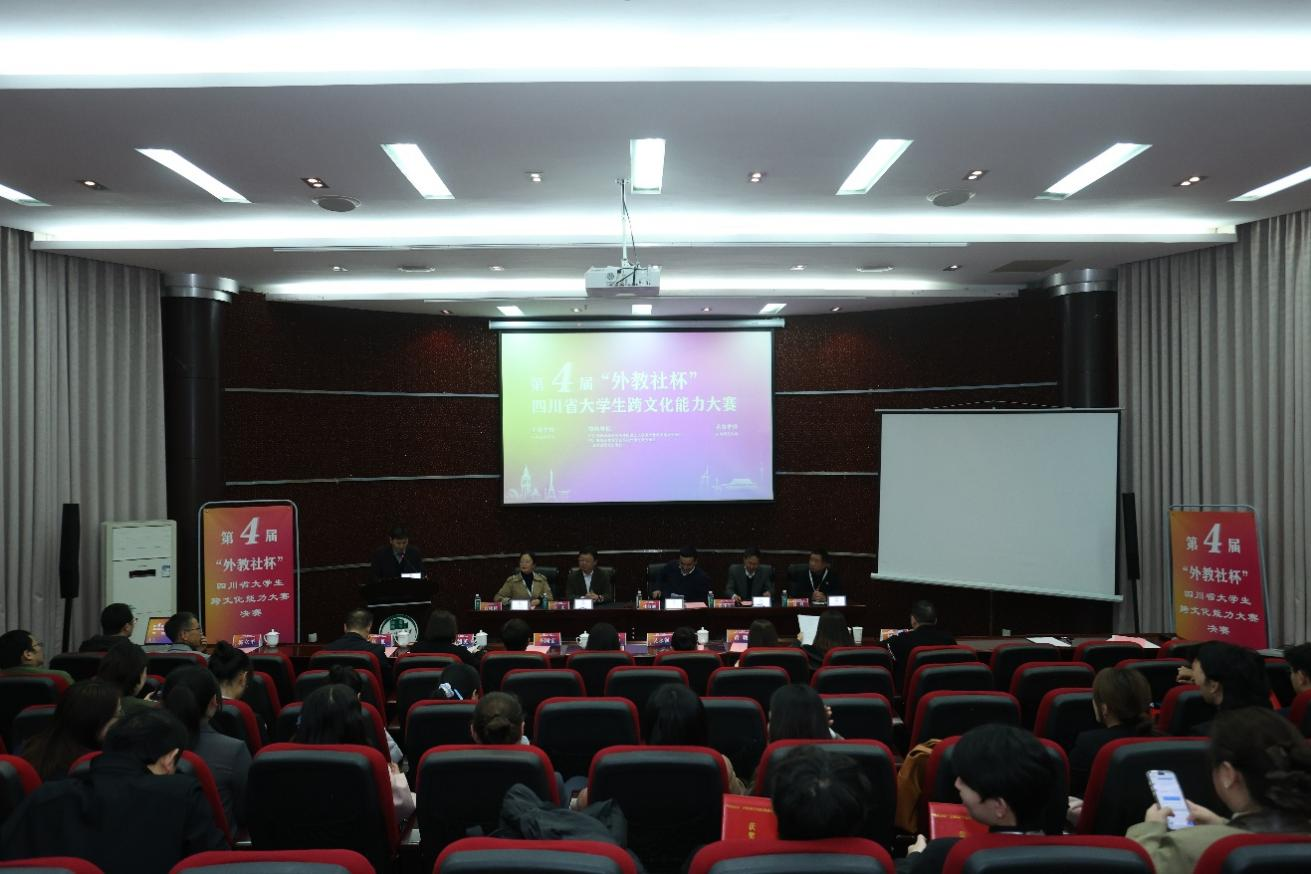 2025年11月2日,第四届四川省大学生跨文化能力大赛暨第八届“外教社杯”全国高校学生跨文化能力大赛(四川赛区)决赛在我校举行。本次大赛由四川省教育厅主办、我校承办,四川省普通本科高校外国语言文学类专业教学指导委员会、四川省高等教育学会高校外语专业委员会、上海外语教育出版社协办,旨在落实教育对外开放要求,搭建师生交流平台,助力国际人才培养。大赛颁奖典礼在我校成龙校区办公楼125会议室举行,四川省教育厅高等教育处杜敏通主任,四川师范大学教务处处长侯邦品,四川省普通本科高等学校外国语言文学类教学指导委员会主任委员、四川大学教授段峰,上海外语教育出版社副总编辑张宏致辞。颁奖典礼由我校外国语学院副院长佘振华主持。