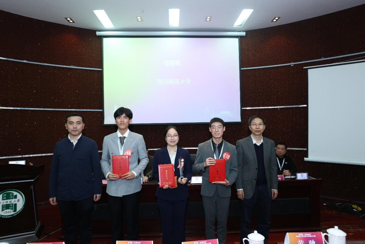 经过前期角逐,共有来自四川大学、成都理工大学、西南石油大学、四川师范大学等高校的12支参赛队伍脱颖而出进入决赛。在决赛中,各代表队依次进行了跨文化知识问答、跨文化情景述评以及讲述中国故事等三个环节的比赛。他们沉着应答、分工明确,展现了出色的跨文化综合素养和优秀的团队协作精神。经过激烈比拼,四川师范大学参赛队伍荣获本次大赛特等奖,四川大学、西南石油大学和成都理工大学等三所高校参赛队伍荣获一等奖。与会领导、嘉宾为获奖团队颁发了荣誉证书。西南石油大学外国语学院院长吕旭英教授代表评委作总结点评。她肯定了选手的语言能力、文化意识与团队协作精神,同时也希望选手们以此次大赛为新起点,拓展中外文化知识面,深化案例分析的理论结合度,提出更具原创性的观点,不断提升跨文化能力。