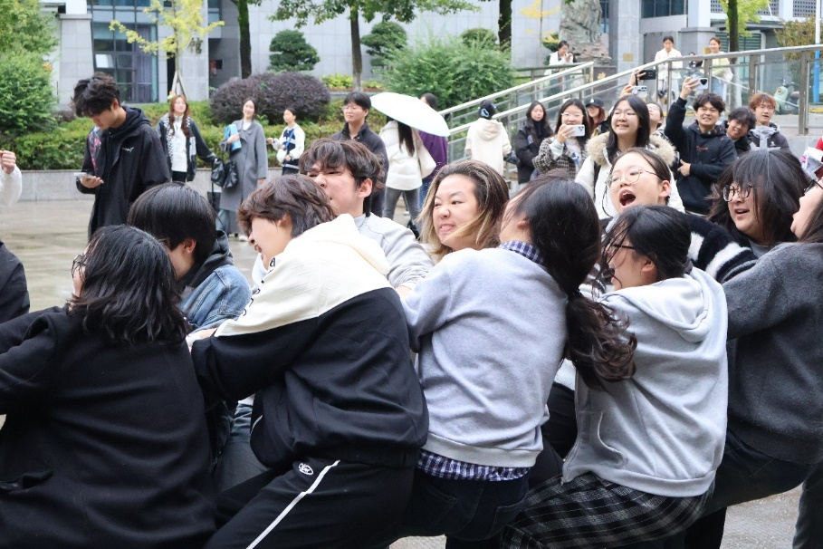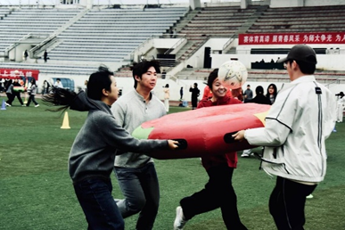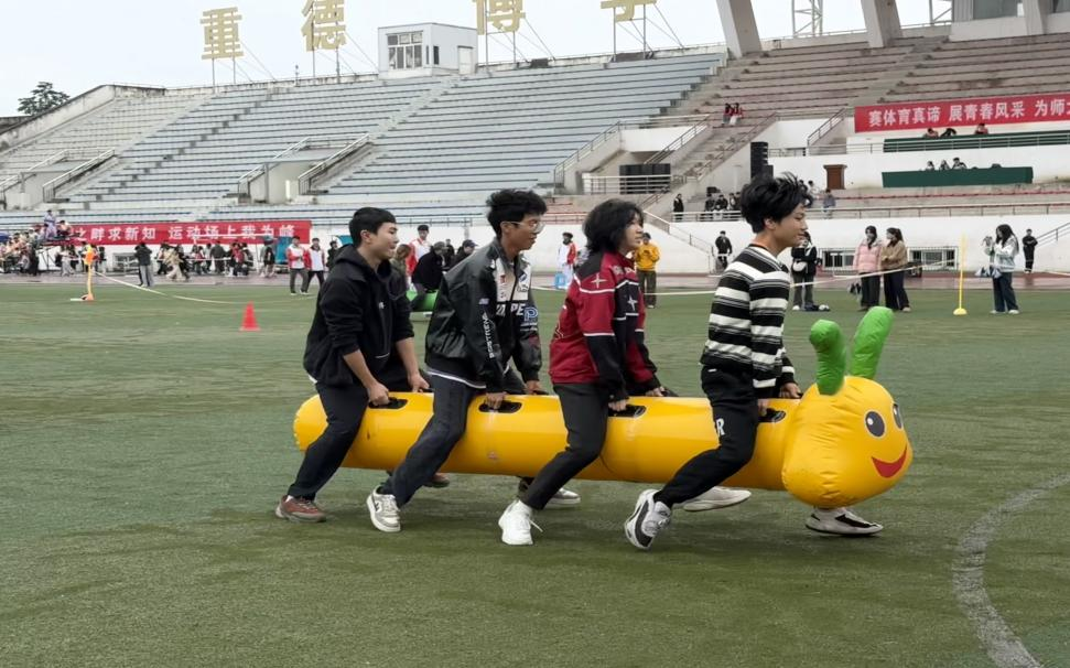 “快乐毛毛虫”比赛现场,外国语学院的选手伴着“一二——一二——”的节拍齐步飞驰。口号掷地有声,脚步整齐划落,速度、力量与默契交织成一条呼啸向前的彩龙。终于,他们以惊人的速度冲过了终点线,那一刻,他们昂首挺胸,脸上洋溢着胜利的喜悦。虽然与冠军仅有一步之遥,但他们用实力证明了自己,最终荣获了亚军的荣誉,这是他们的骄傲,也是他们的荣耀。