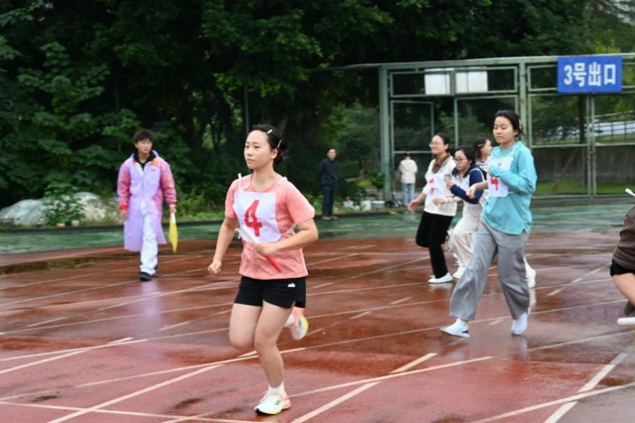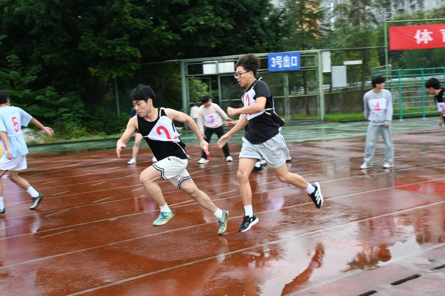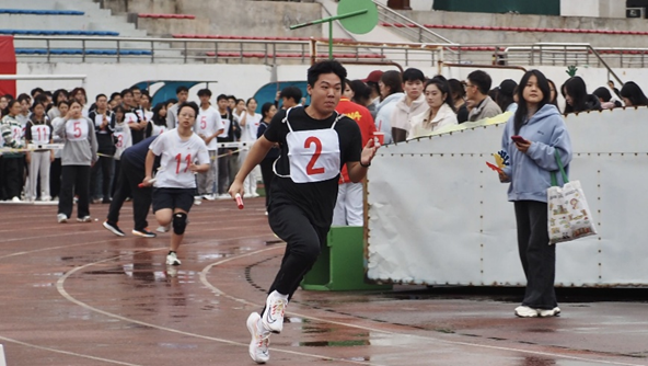在男子、女子4×100米接力决赛中,外院4X100米接力队以电光火石般的交接震撼全场。起跑线上,枪声一响,第一棒如离弦之箭破风而出,弯道处身倾如弓,直道里步频似鼓。第二棒、第三棒顺利交接,第四棒昂首冲刺时,观众席呐喊与脚步同频共振。最终,外国语学院荣获男子、女子4×100米接力双第一。