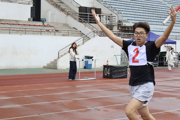 赛场沙坑起风烟,腾跃身姿若惊弦。助跑踏破秋光暖,纵身舒展似燕翩。外院选手步稳志坚,每一次蹬地都攒满力量,每一回腾空都写满果敢。最终,男子跳远组何浩然摘得冠军,黄家俊荣获第四名,女子跳远组王蕊斩获第六名。
