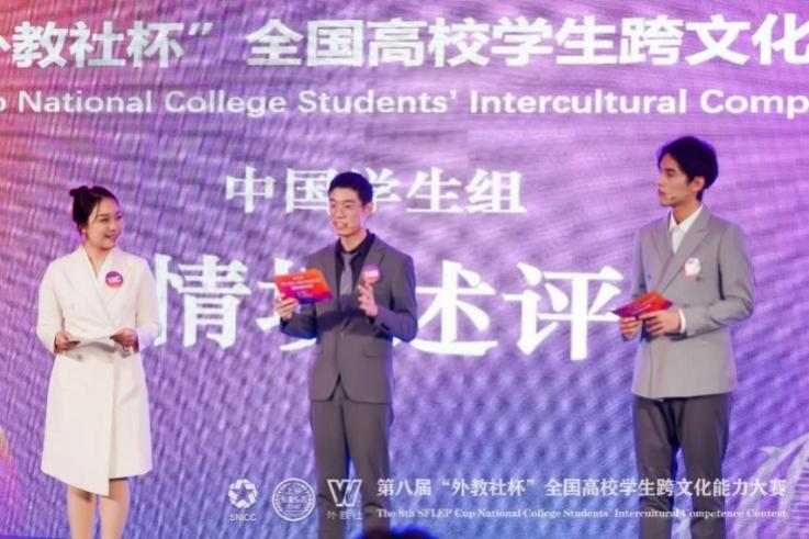 “外教社杯”全国高校学生跨文化能力大赛是《全国普通高校大学生竞赛分析报告》上榜竞赛,由中国教育国际交流协会指导,上海外国语大学主办,上海外语教育出版社承办,是我国高校跨文化教育领域具有广泛影响力和高度权威性的全国性赛事。大赛以服务国家对外开放和国际交流需求为导向,致力于推动跨文化教学改革与实践创新,引导青年学生在真实复杂的跨文化情境中提升文化理解力、沟通协调力与国际传播能力,对于培养具备家国情怀、全球视野和跨文化胜任力的高素质国际化人才具有重要意义。