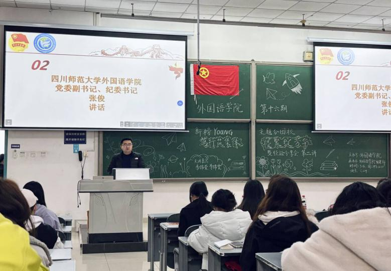 集体是青春的熔炉,担当是成长的底色。厚植青年学子集体意识根基,锤炼学生骨干担当作为本领,推动个人成长与集体发展同频共振,3月18日中午,外国语学院第十六期“新榜YOUNG”主题分团校第二讲“笃行筑集体,寝聚绽芳华”在成龙校区第一教学楼C204教室顺利开讲。学院党委副书记、纪委书记张俊,各年级辅导员出席活动,十佳优良学风寝室代表季锦萱、十佳优良学风班集体代表李锦雯受邀担任主讲嘉宾,分团校全体学员参加本次活动。