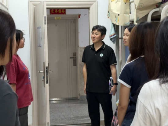 期间,副院长佘振华与研究生辅导员奂婷婷深入研究生寝室,细致了解同学们的入住情况与生活需求,叮嘱大家注意用电安全,保持卫生整洁,强化身心健康,以更好的状态迎接新学期的学习生活。