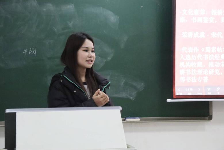 本课程特邀美术学院·书法学院志愿者同学担任主讲,共设置两场书法专题分享。第一讲聚焦唐代书坛巨匠颜真卿,在讲述其忠烈生平与时代背景的基础上,深入剖析其楷书笔力雄浑、结体宽博的“颜筋”特质;第二讲则欣赏宋代米芾的《蜀素帖》,解读其行书率意洒脱的“尚意”风格,引领学员体会书法作为心性流露的艺术传统。