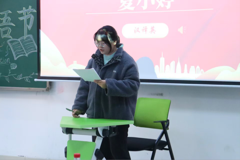 为激发学生外语学习兴趣,提升外语翻译与跨文化沟通能力,12月16日中午,第十届外语节外语翻译大赛(英语组)决赛在成龙校区第一教学楼A211教室成功举办。学院翻译硕士专业学位点负责人任伟,英语系教师胡云、谭凌霄等出席赛事并担任评委。学院党委副书记、纪委书记张俊,学工办主任、分团委书记、2025级辅导员符浩,2022级辅导员杨明凤、谢欣汝,2023级辅导员蒋建政,2024级辅导员李星磊、吴有,2025级辅导员熊元元等到场观摩。