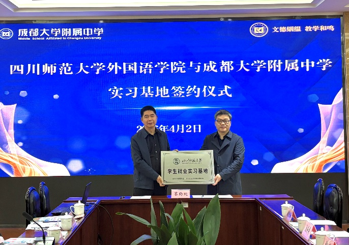 在成都大学附属中学,校长巨洪礼介绍了该校办学概况、师资队伍建设及人才招聘需求,期待两校深化全方位合作,共建实践育人平台。曹曦颖介绍了学院落实立德树人根本任务,立足师范教育优势,在学科建设、人才培养及毕业生就业等工作上所取得的成效。杨晓勇表示,学院长期致力于高素质外语教育人才培养,希望以此次合作为契机,推动两校资源互通、协同育人,助力提升学生实践能力,拓展就业渠道。