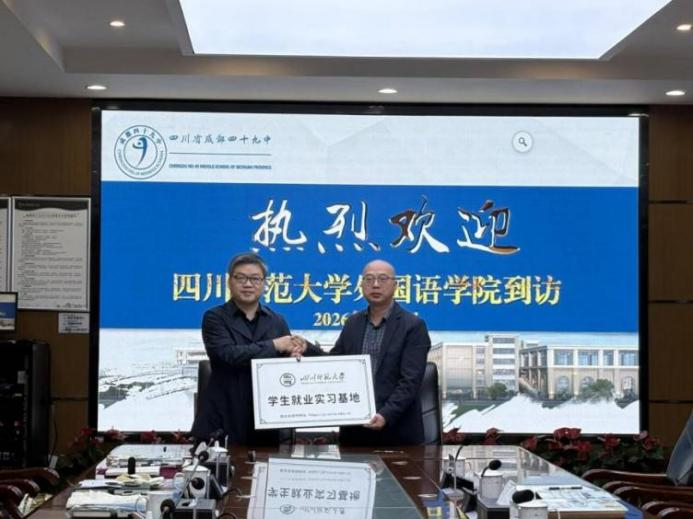 在成都市第四十九中学校,校长任小林、党委副书记钟巧和副校长阳春燕等分别介绍了该校办学历史、办学特色和外语教学实践成果,对未来一个时期学校外语教师需求情况做了说明。曹曦颖详细介绍学院人才培养理念与办学成果,特别就学院2026届毕业生情况做了介绍,期待包括成都市第四十九中学在内的更多学校到学院选聘毕业生,同时,她就本科招生工作做了宣讲。杨晓勇感谢成都市第四十九中长期以来对学院实习就业工作的大力支持,希望通过“访企拓岗促就业”活动,为两校合作架起桥梁,推动人才培养与岗位需求精准对接。