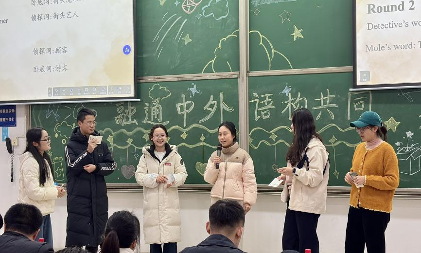 12月18日中午,第十届外语节“外语城”系列活动在成龙校区第一教学楼C204教室顺利举办。本次活动以“融通中外 语构共同”为主题,通过多样化互动形式,营造沉浸式外语学习氛围,为全校学子搭建语言实践与文化浸润的平台。外国语学院党委副书记、纪委书记张俊,学工办主任、分团委书记、2025级辅导员符浩,2022级辅导员杨明凤、谢欣汝,2023级辅导员蒋建政,2024级辅导员李星磊、吴有,2025级辅导员熊元元等出席活动。各学院同学踊跃参与,在多元化情景中感受跨文化魅力。